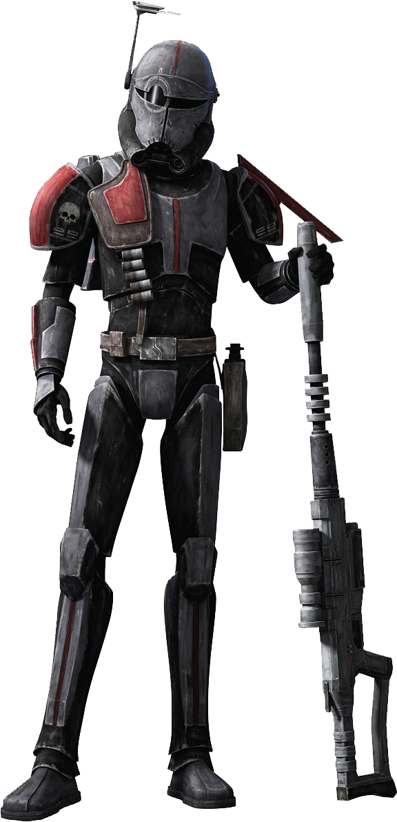 Crosshair is a genetically enhanced clone trooper who we first see in Star Wars: Clone Wars in the beginning of season 7. He is a part of Clone Force 99, a small squad of clones who have all been enhanced. His squadmates are as follows: Hunter, who is designed for tracking. Tech, who is designed for intelligence. Wrecker, who is designed for brute strength. And finally, Crosshair, who was designed for sniping and marksmanship.