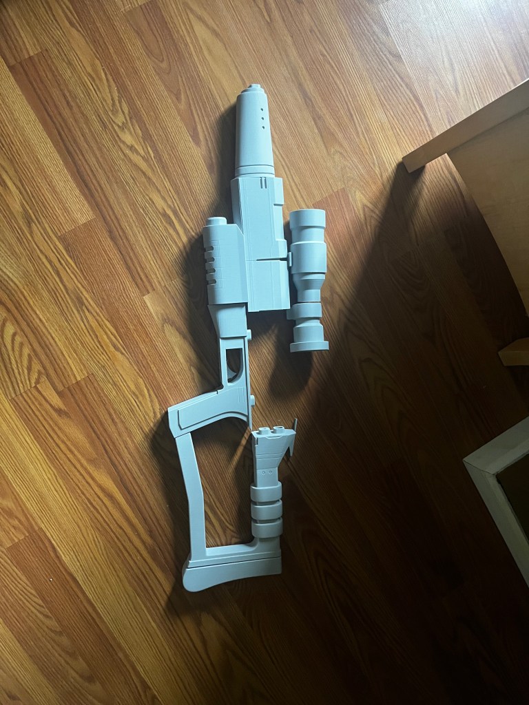 And so, after buying the printer, I decided for my first 3d printed cosplay that I would make Crosshair’s entire suit of armor and weapons. Making this cosplay would teach me just about everything I needed to know about using the software and hardware, without needing to learn 3d modeling as I found the STL files online. All of this cosplay’s files came from Galactic Armory. After the printer’s arrival, I printed a benchy and two random trinkets, before printing the first piece of the rifle.